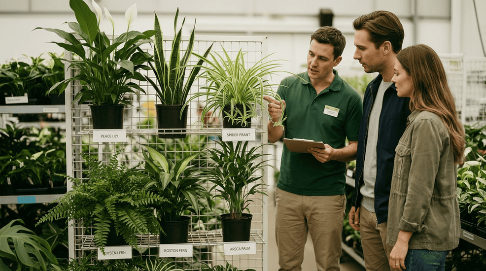 Assess your space and quantity needs: For a normal room (10–12 m²), aim for 3–5 medium plants, or 1 big + 2 medium ones. This density creates a small natural “air zone.”